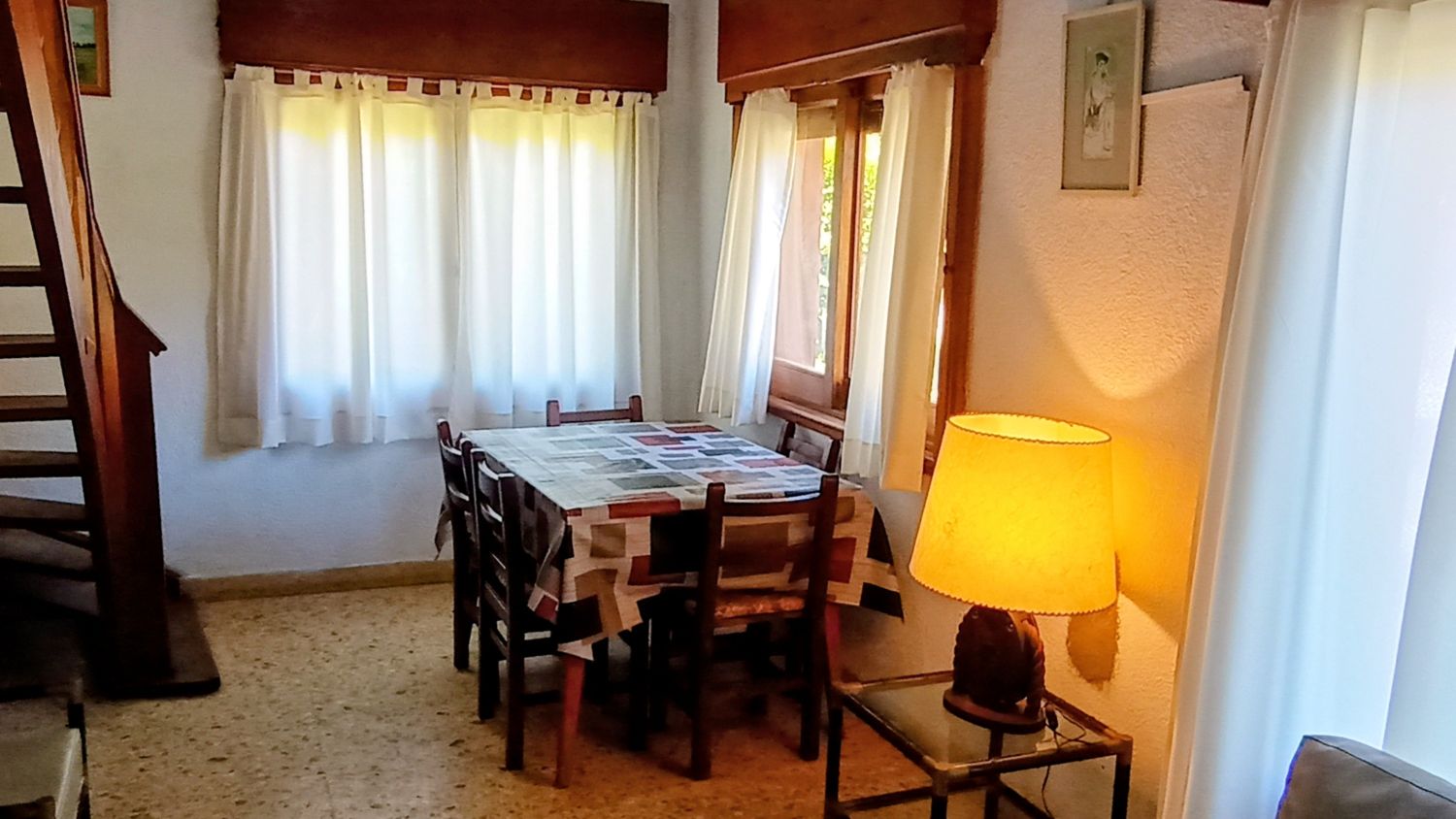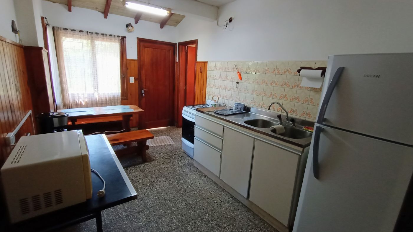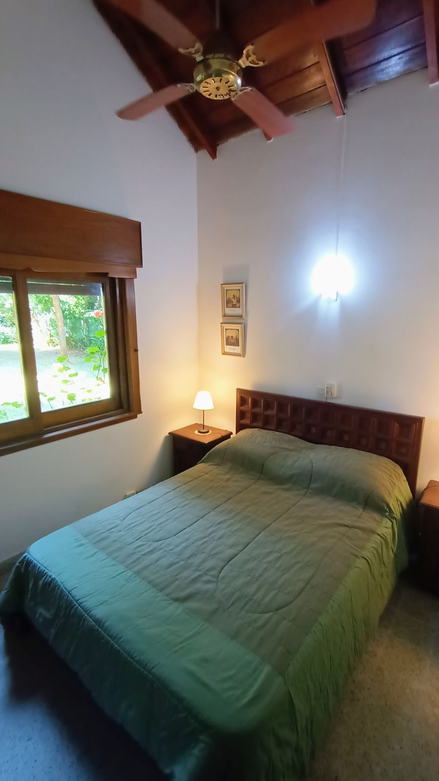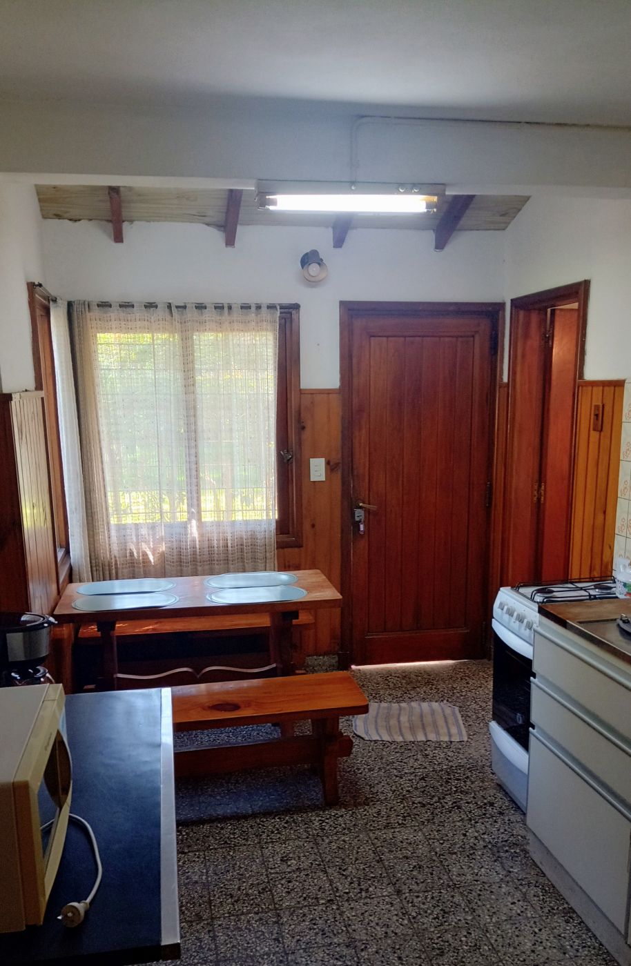 Casa 3 ambientes en una sola planta. Ofrece: Living-comedor con mucha luz y ventilación. Cocina independiente muy bien equipada, con mesa y banquetas para desauynar. Lavadero cubierto. Baño. 2 Dormitorios con ventanas que dan al jardín. Buenos colchones y almohadas. Gran parque para disfrutar.
