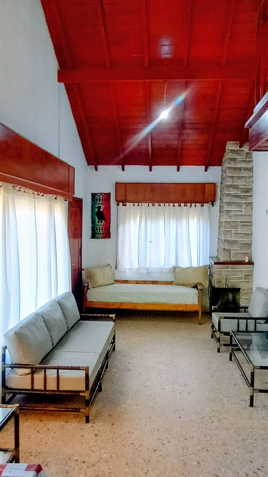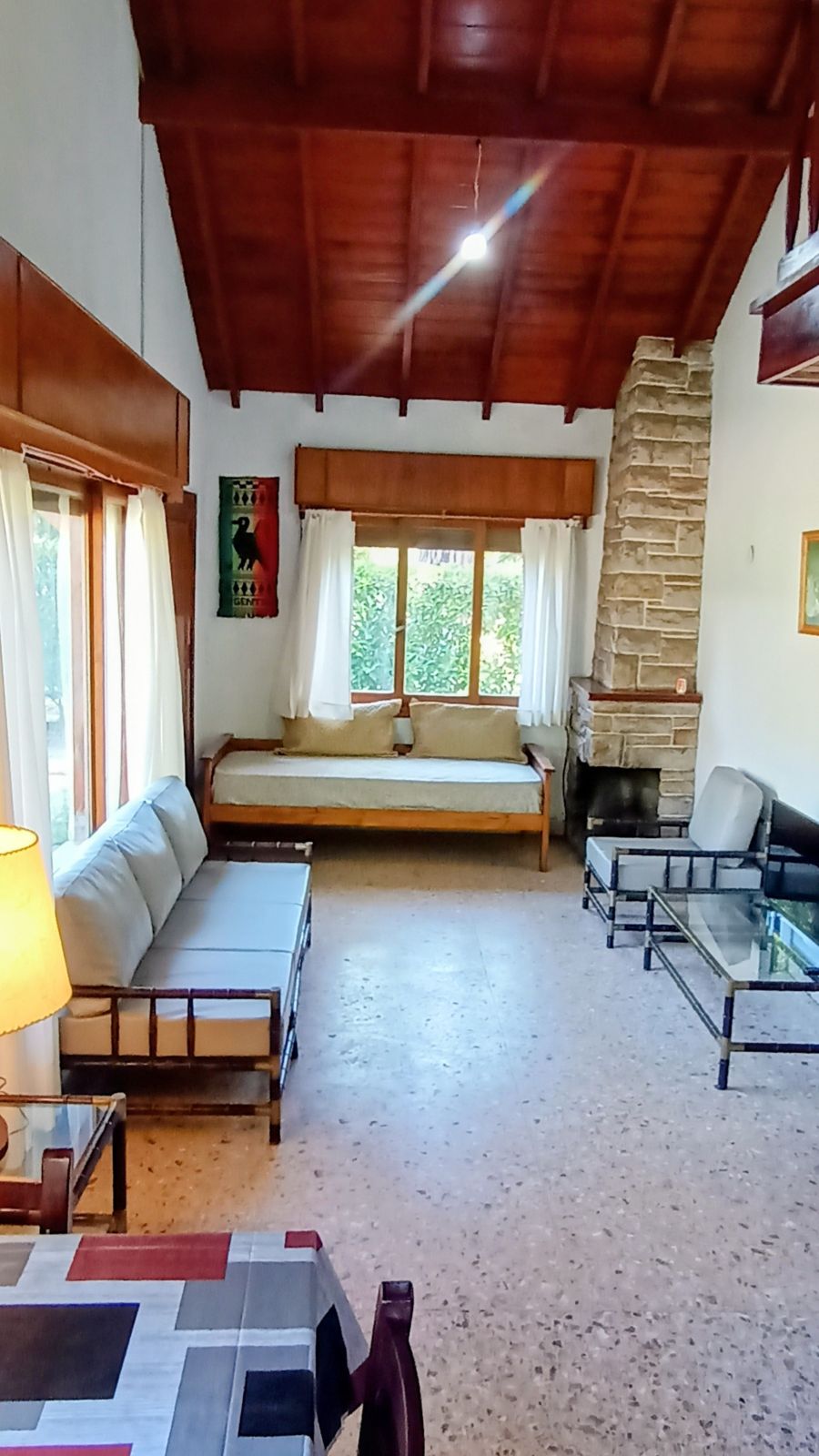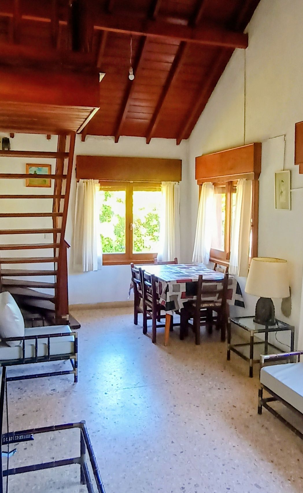 Casa 3 ambientes en una sola planta. Ofrece: Living-comedor con mucha luz y ventilación. Cocina independiente muy bien equipada, con mesa y banquetas para desauynar. Lavadero cubierto. Baño. 2 Dormitorios con ventanas que dan al jardín. Buenos colchones y almohadas. Gran parque para disfrutar.