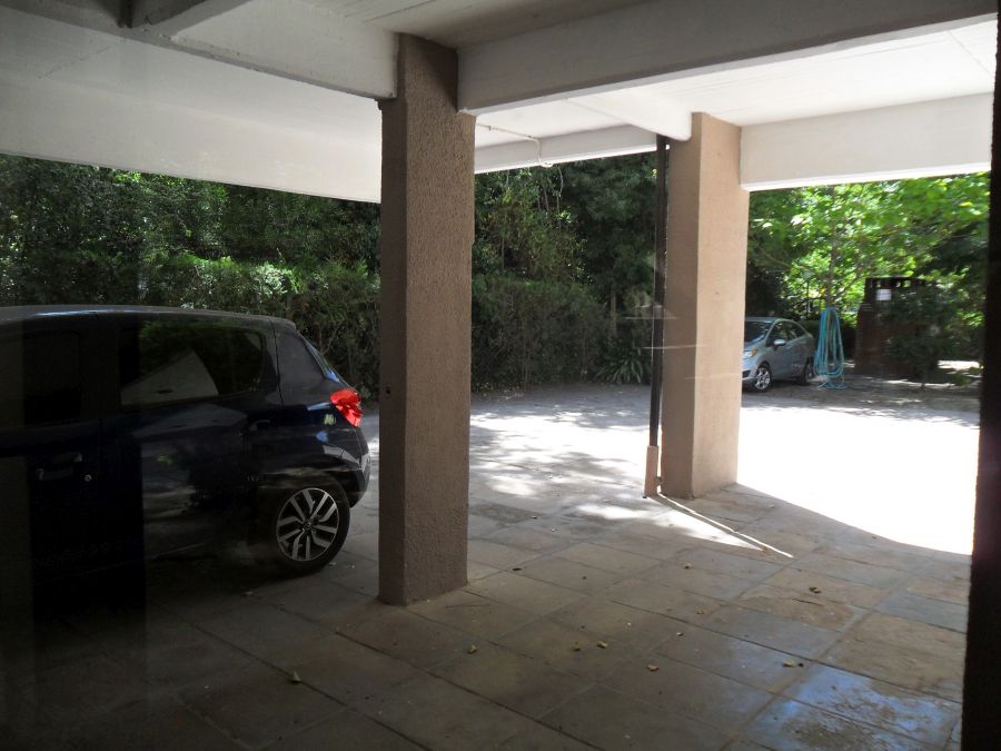 COCHERA en espacios comunes. Zona de parrilla y jardín en contrafrente.
