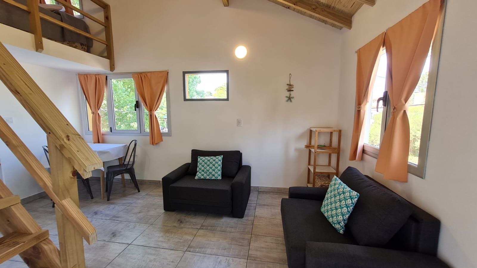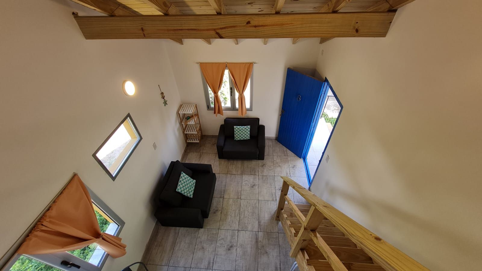 En la planta alta los pasillos semicubiertos a ambos lados distribuyen un total de 8 unidades. Es importante notar que estas unidades han sido refaccionadas totalmente a nuevo ofreciendo confort y un estilo de decoración en línea con las nuevas exigencias del público. Ambientadas tipo loft, también ofrecen baño privado, frigobar, agua caliente y fria en todos sus grifos.