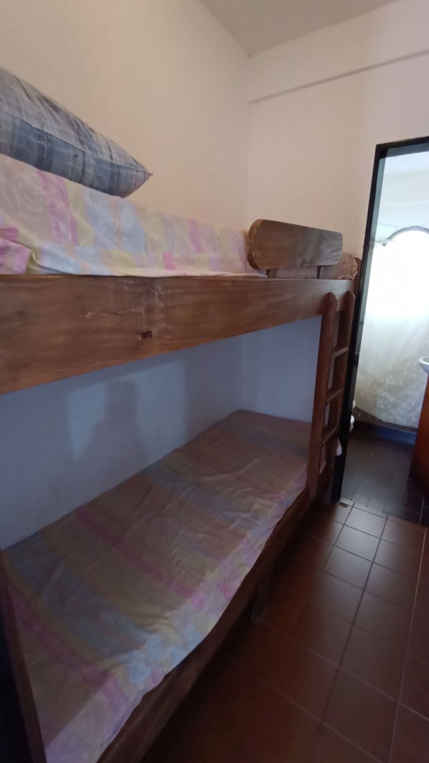 Ubicado en el 1er piso por escalera, al frente, en aprox. 30 m2 distribuye: cocina-comedor diario, un pasillo con  2 literas, 1 baño completo con su ducha y ventilación natural. 1 Dormitorio emplazado como matrimonial con amplia ventana que mira al contrafrente y cómodo placard.