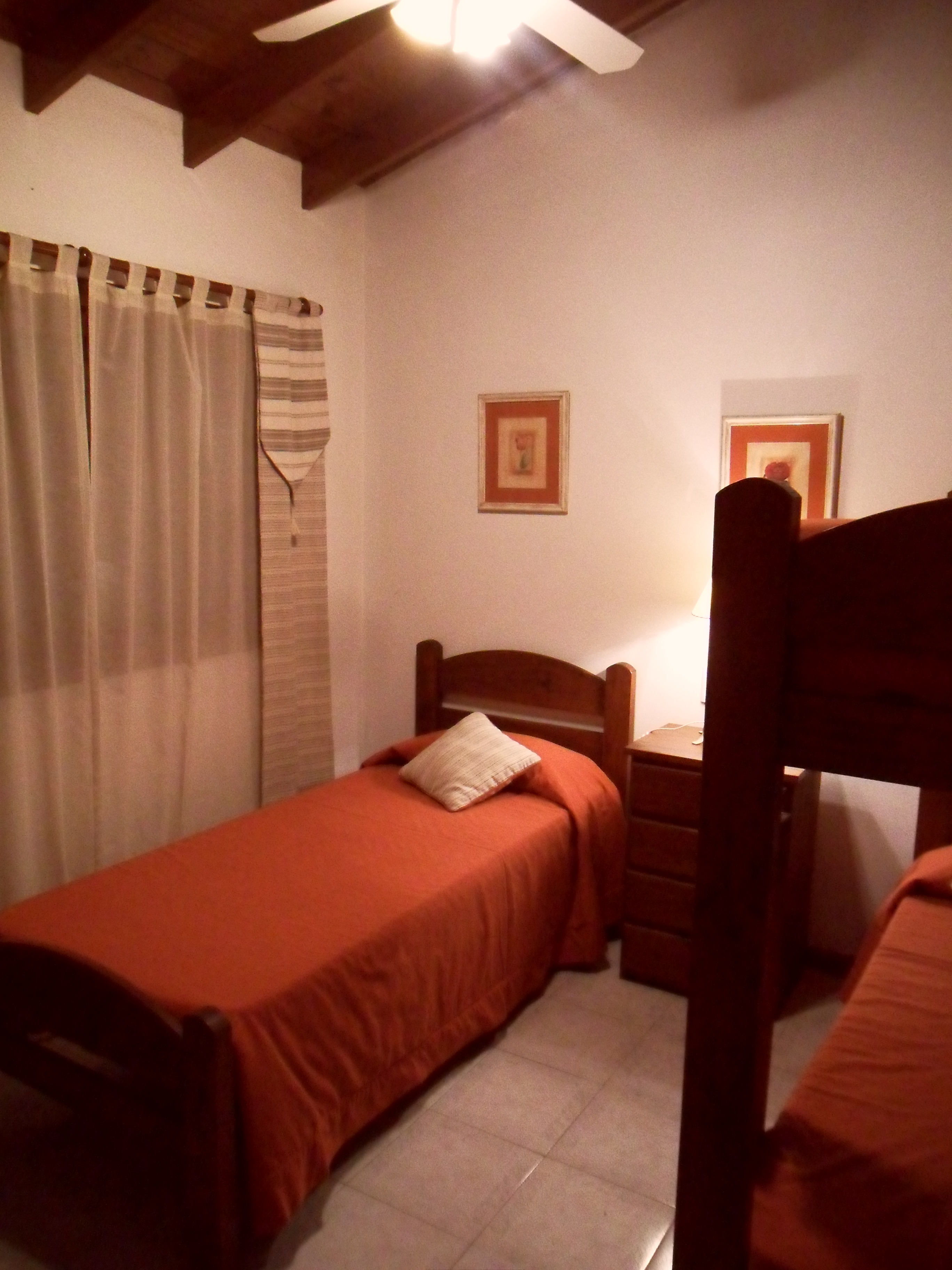 En planta alta: Dormitorio principal con ventana que mira al jardín y placard + 3er dormitorio emplazado para 3 plazas también con ventana que mira al jardín en contrafrente + Baño principal, completo con bidet igual que el de planta baja.