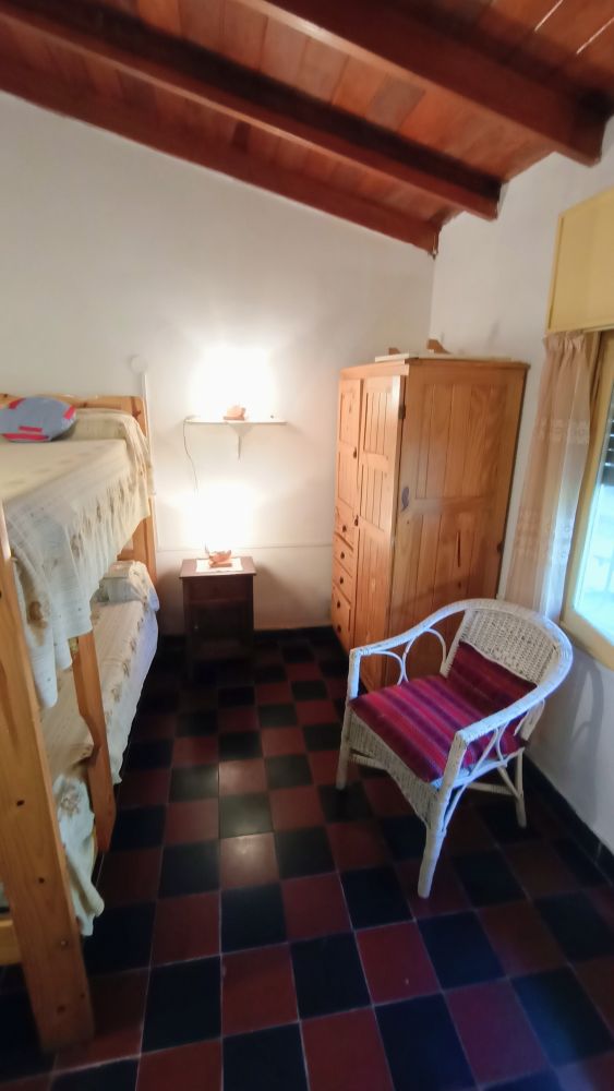 CASA en PLANTA ALTA: Construida en terreno sobrelevado, se accede por aprox. 6 escaleras de laja, en entorno en verde. Porch de acceso, living comedor amplio, ventilado y luminoso - Cocina pequeña pero cómoda, ventilada, alacenas y cocina 4 hornallas con horno. 2 Dormitorios : uno emplazado como matrimonial y el otro con dos camas de 1 plaza. Ambos dormitorios ofrecen cómodos placares y amplias ventanas con persianas, mosquiteros y rejas. 1 Baño completo con bidet y ventilación natural. Lavadero cubierto-Habitación de servicio con baño de servicio.