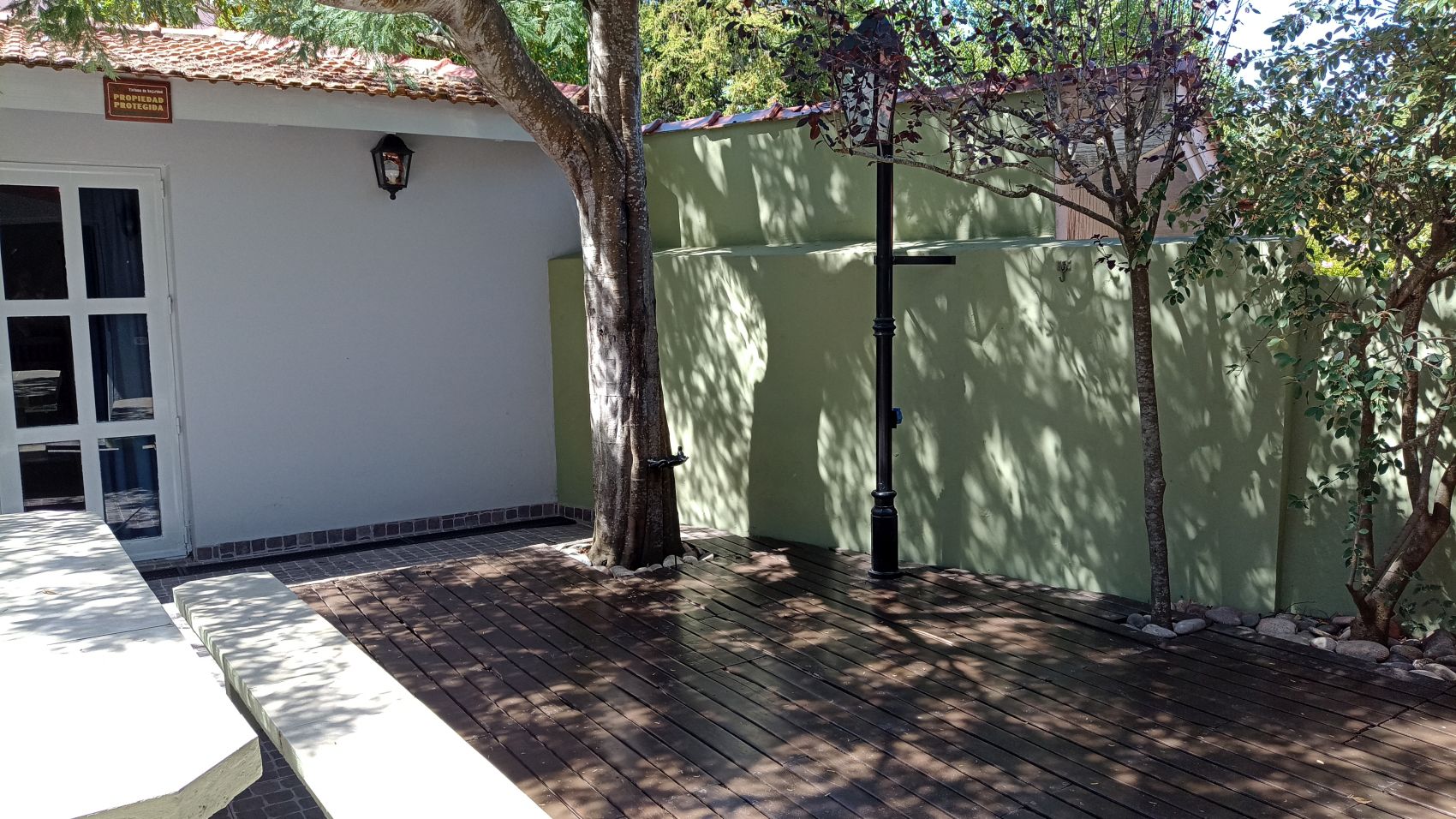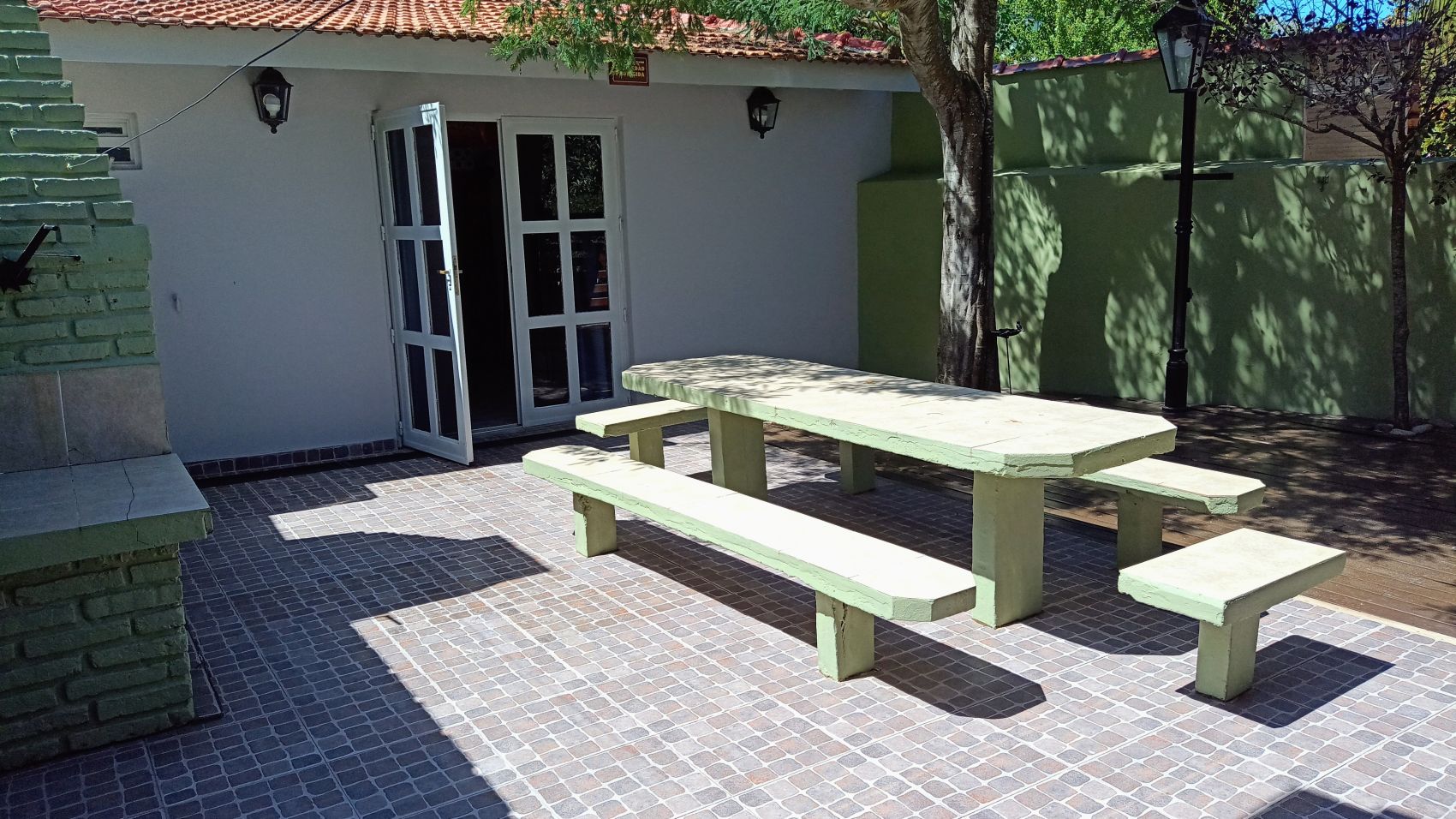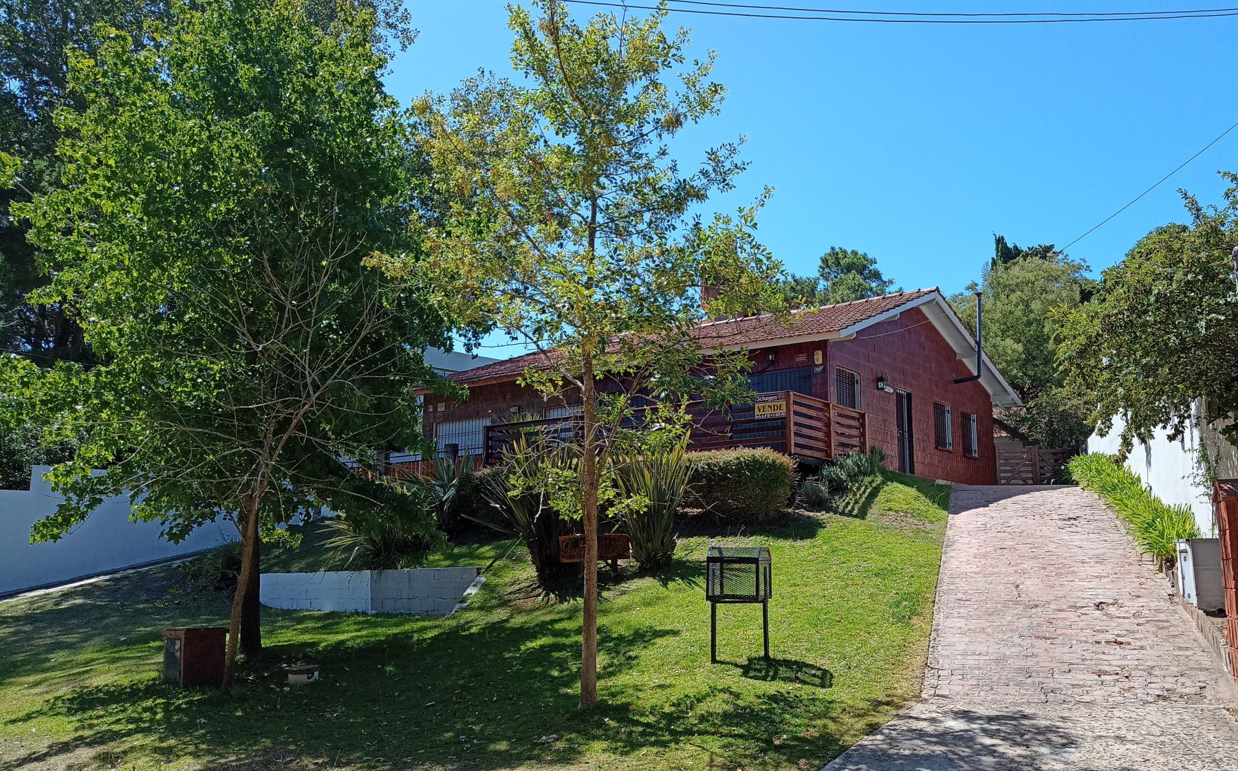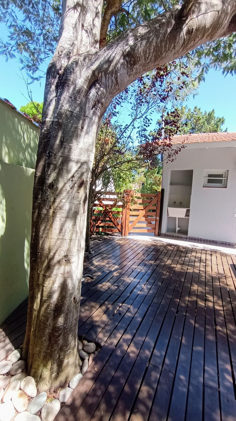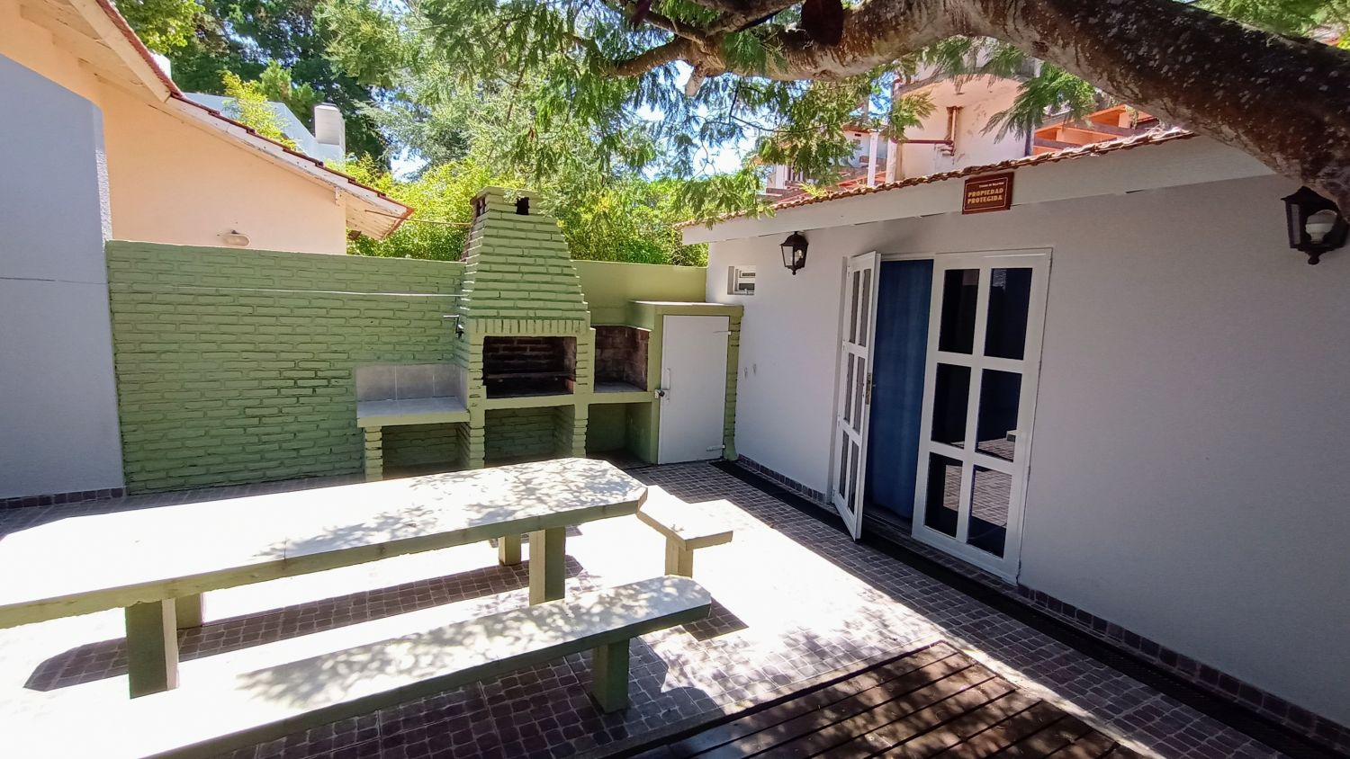 En superficie descubierta: zona de parrilla, con mesa y sillas. Espacio adornado con macetas y flores. Hermoso árbol en el medio del patio descubierto.
